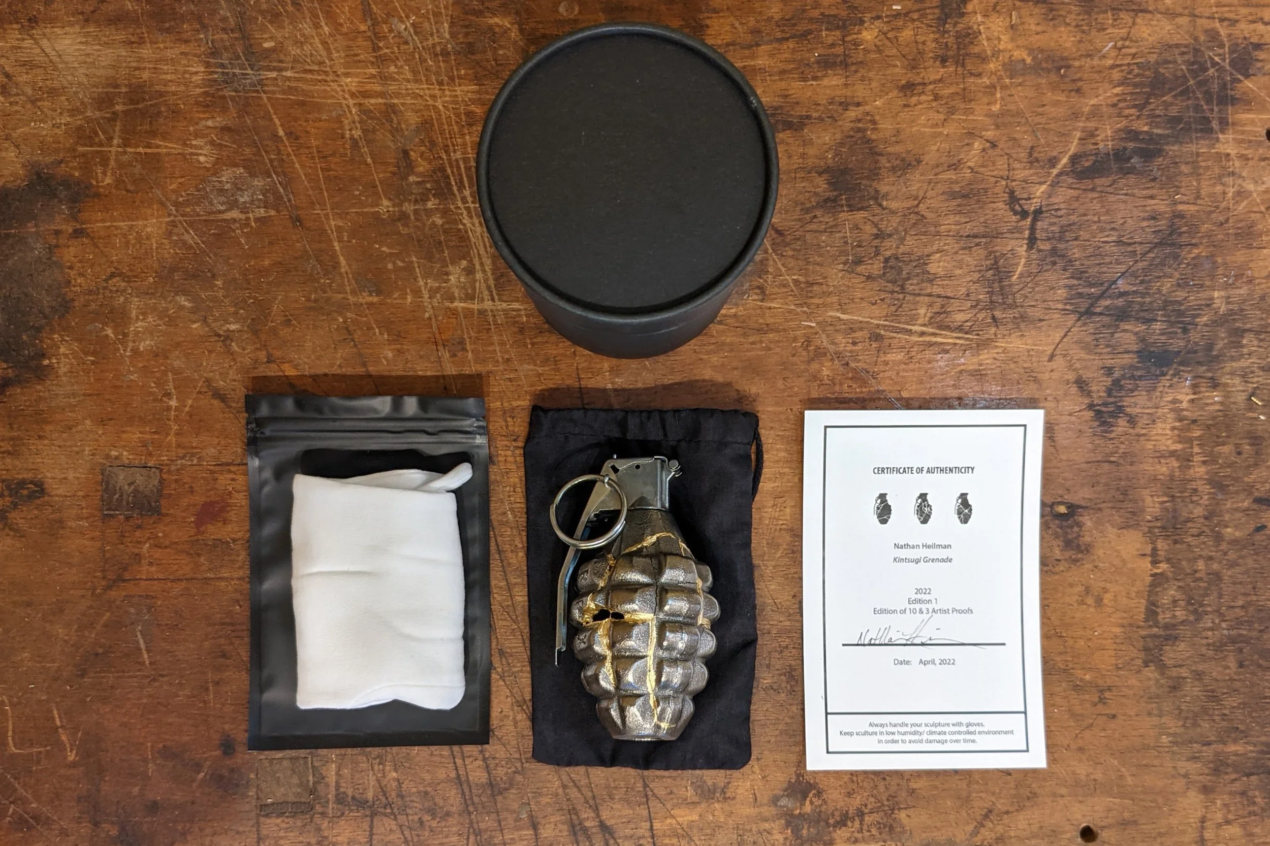 Each of the Kintsugi Grenades will have unique characteristics relative to the way they are shattered and put back together. Please note that these are selected randomly for each collector. My hope is that you will love the unique experience and character of the Kintsugi Grenade you receive.